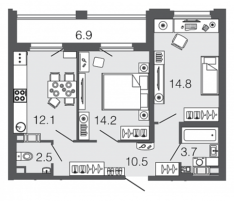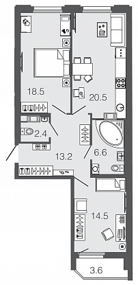 Узнать наличие и цены на квартиры 64,7 кв.м.
