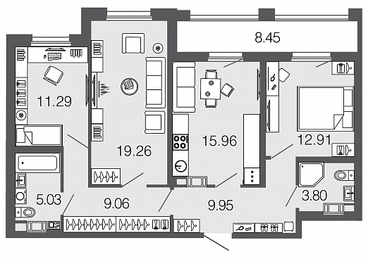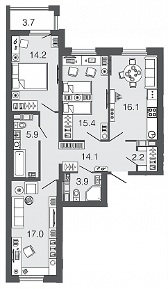 Узнать наличие и цены на квартиры 88,8 кв.м.