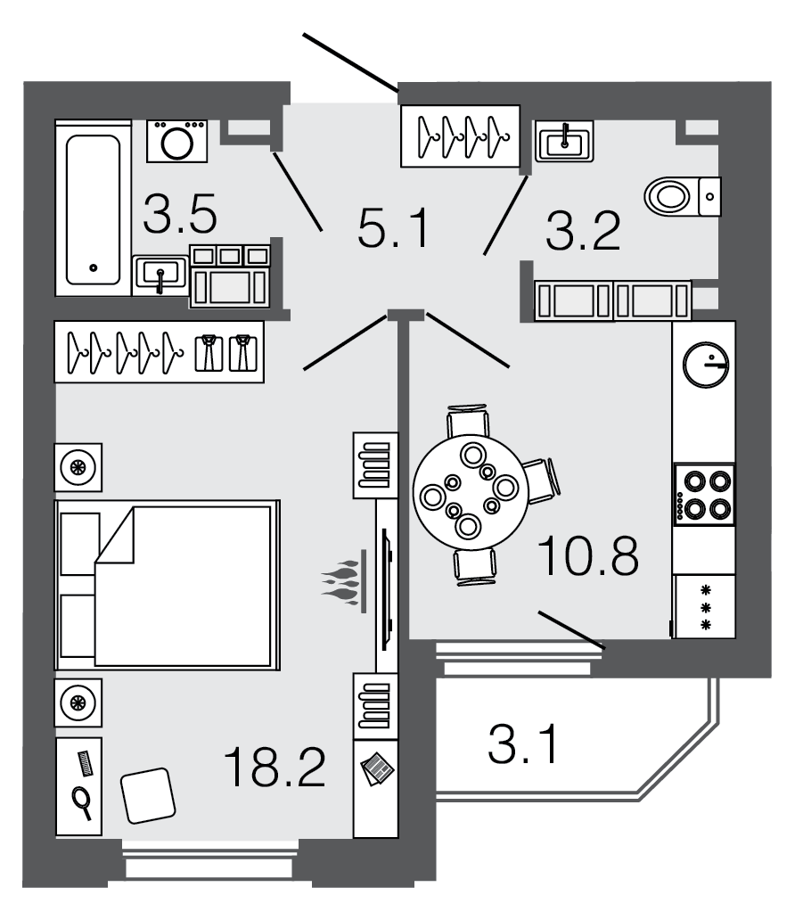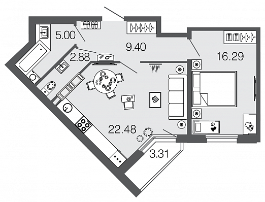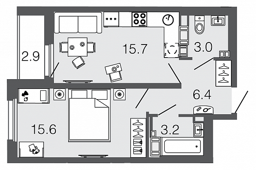 Узнать наличие и цены на квартиры 40,8 кв.м.