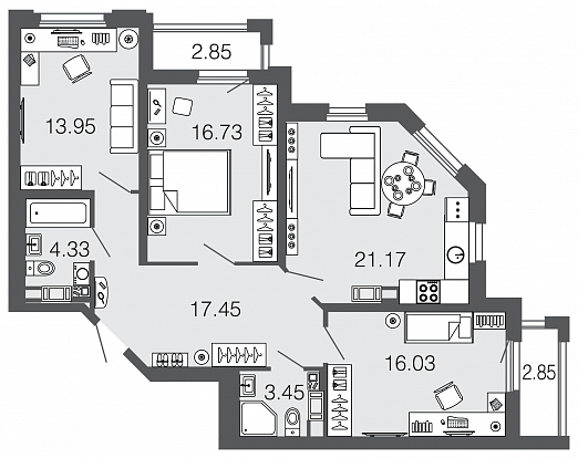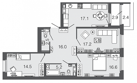 Узнать наличие и цены на квартиры 89,1 кв.м.