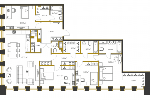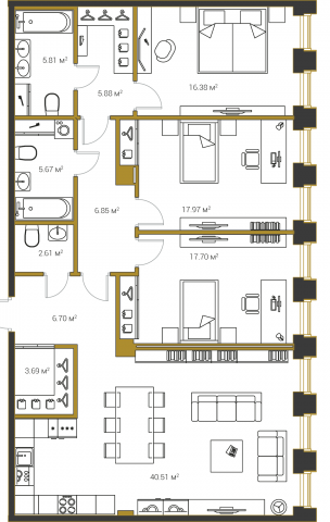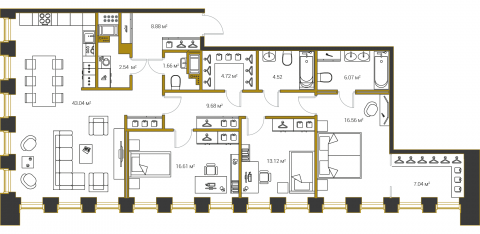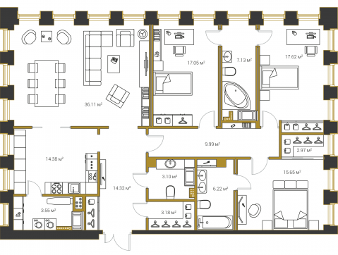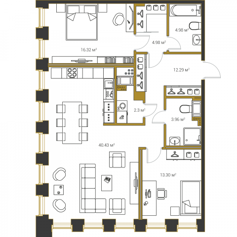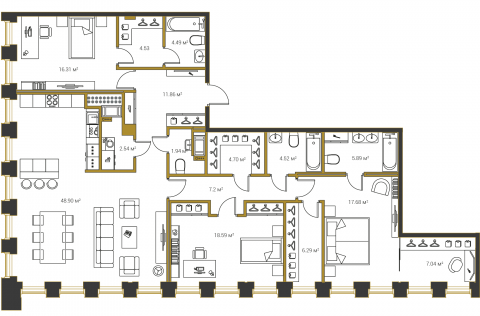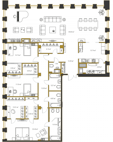 Клубный дом на 109 квартир, вертикальные окна в Нью-Йоркском стиле, голливудские гостиные с панорамными видами, парадный вестибюль площадью 167 кв.м, двухуровневый подземный паркинг с лифтом на 171 место