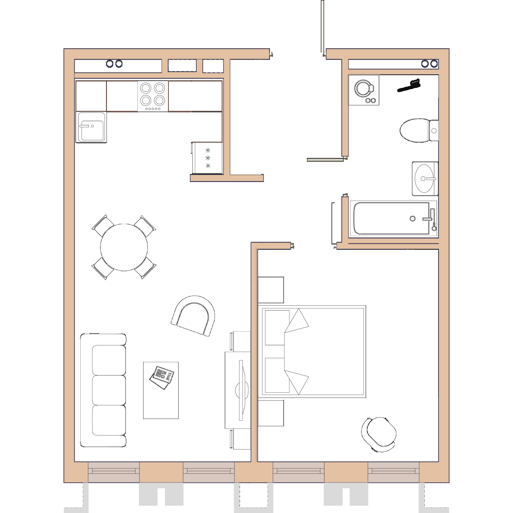 Узнать наличие и цены на квартиры 50,14 кв.м.