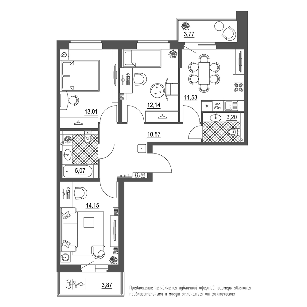В жилом комплексе представлен большой выбор квартир от уютных студий до просторных трехкомнатных, среди которых есть варианты квартир с готовой отделкой.